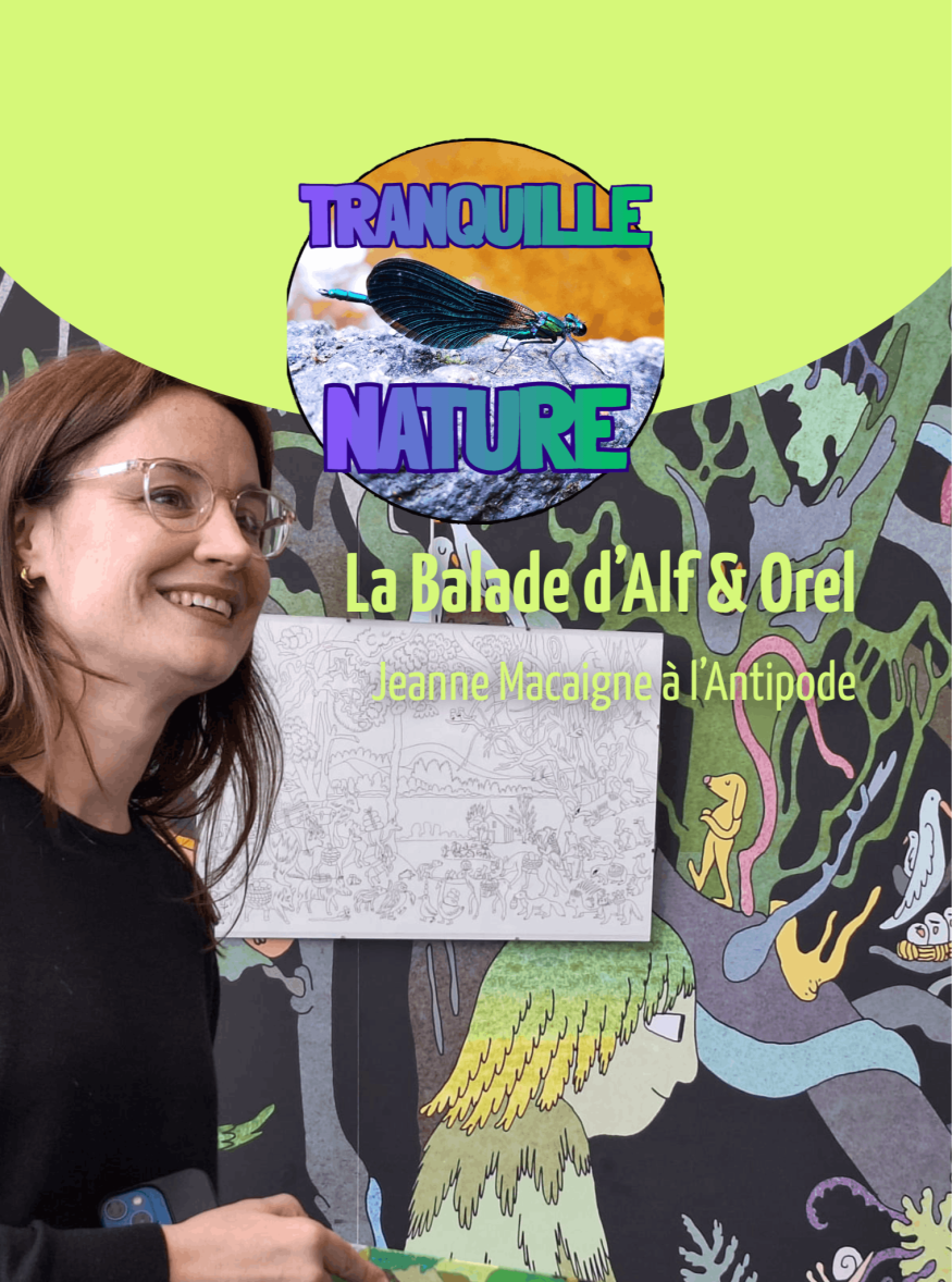 Dans ce nouvel épisode de Tranquille Nature, on découvre Alf et Orel, un album jeunesse rendant honneur à la beauté des saisons en traversant les thèmes de l'amitié, de la rencontre, et de la liberté. Ce livre de Jeanne Macaigne est mis à l'honneur lors de l'exposition "La Balade d'Alf et Orel" à l'Antipode ! Au travers de Alf et Orel, on aborde les questions de l'accès aux espaces naturels et à la médiation pour la préservation de l'environnement pour les enfants.