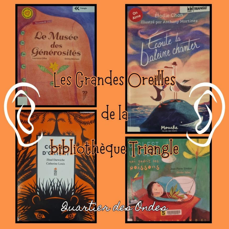 4 nouveaux ouvrages à découvrir dans les Grandes oreilles de la bibliothèque Triangle avec Virginia et Murielle au micro : “Écoute la baleine chanter”, “Le musée des générosités”, “Contes d'Orient” et “Ceci est un poème qui guérit les poissons”