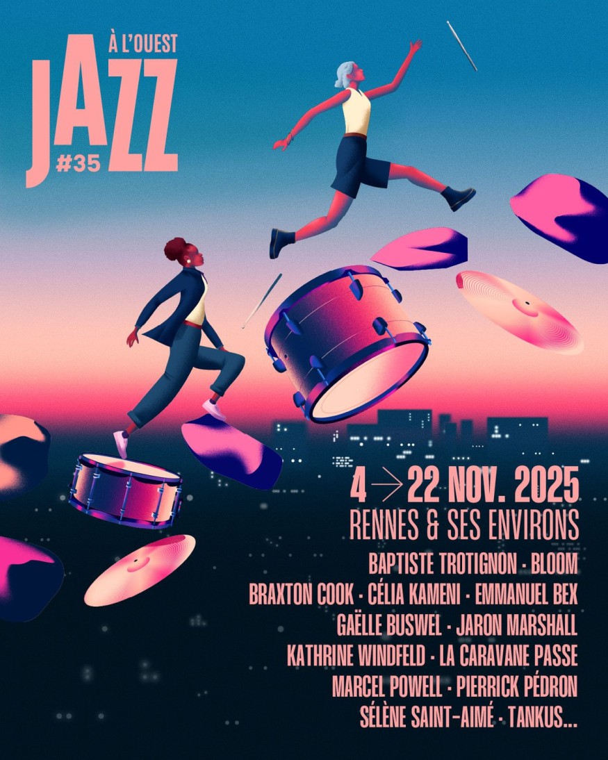 à l’occasion de la 35e édition du Festival Jazz à l’Ouest organisé par la MJC Bréquigny, du 4 au 22 novembre 2025 : près de 60 rendez-vous musicaux, dont 21 propositions gratuites dans une vingtaine de lieux dans la Métropole Rennaise.