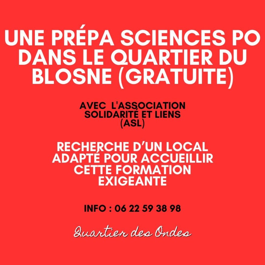 ASL lance un appel urgent : l'association est à la recherche d’un local adapté pour accueillir cette formation exigeante. Sans cet espace, difficile de mettre en place les ateliers hebdomadaires qui doivent démarrer dès octobre 2025. De plus, ASL mène depuis plus de 17 ans des séances de soutien scolaire bénévolement dans le quartier du Blosne ; sans local, ce dispositif essentiel de notre quartier est en danger.